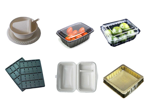 主要適用于BOPS、HIPS、PS、PVC、PET等塑料片材加熱成型、計數、堆垛.生產各種敞口型的盒、碟、托盤、碗、蓋等塑料 包裝制品。如食品盒、蛋糕盒、快餐盒、糕點托盤、超市托盤、醫藥針劑托盤、口服液托盤。